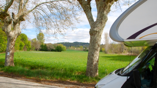 Morning run for Jen, maths for the kids, poo out, drinking water in, grey water out, bikes on, table and chairs in, mat (soggy) in, and a slow getaway on this drizzly morning through the village of Vence and up via Tourettes,