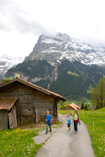 Great decision. We find an armful of tourist activity information and meander to the town’s campsite where we hop on the bikes and weave through a small village beneath the peak of the Wetterhorn .